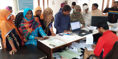 Village ladies waiting to draw Govt payments ,maintaining social distancing in Rajastan